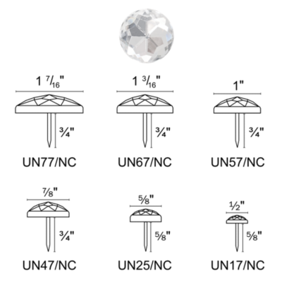 • Clear, round-shaped crystal gem upholstery nails add glamour and sparkle to home furnishings.